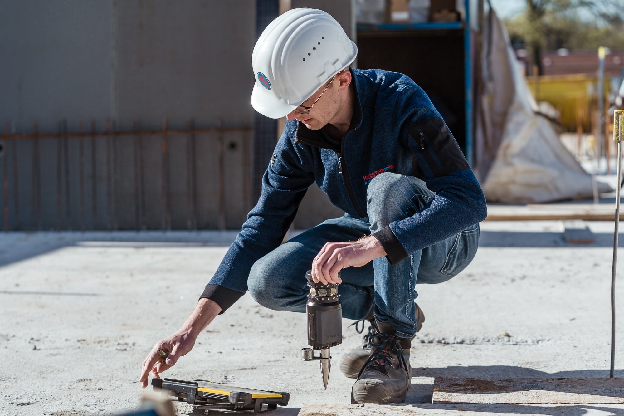 Potain-Krane, modernste Bagger von Volvo und Liebherr, digitale Vermessungstechnik von Trimble, eine komplette Hilti-Flotte auf Akku und der größte neuwertige Schalungsbestand der Region – bei uns arbeitest du mit dem Besten vom Besten.